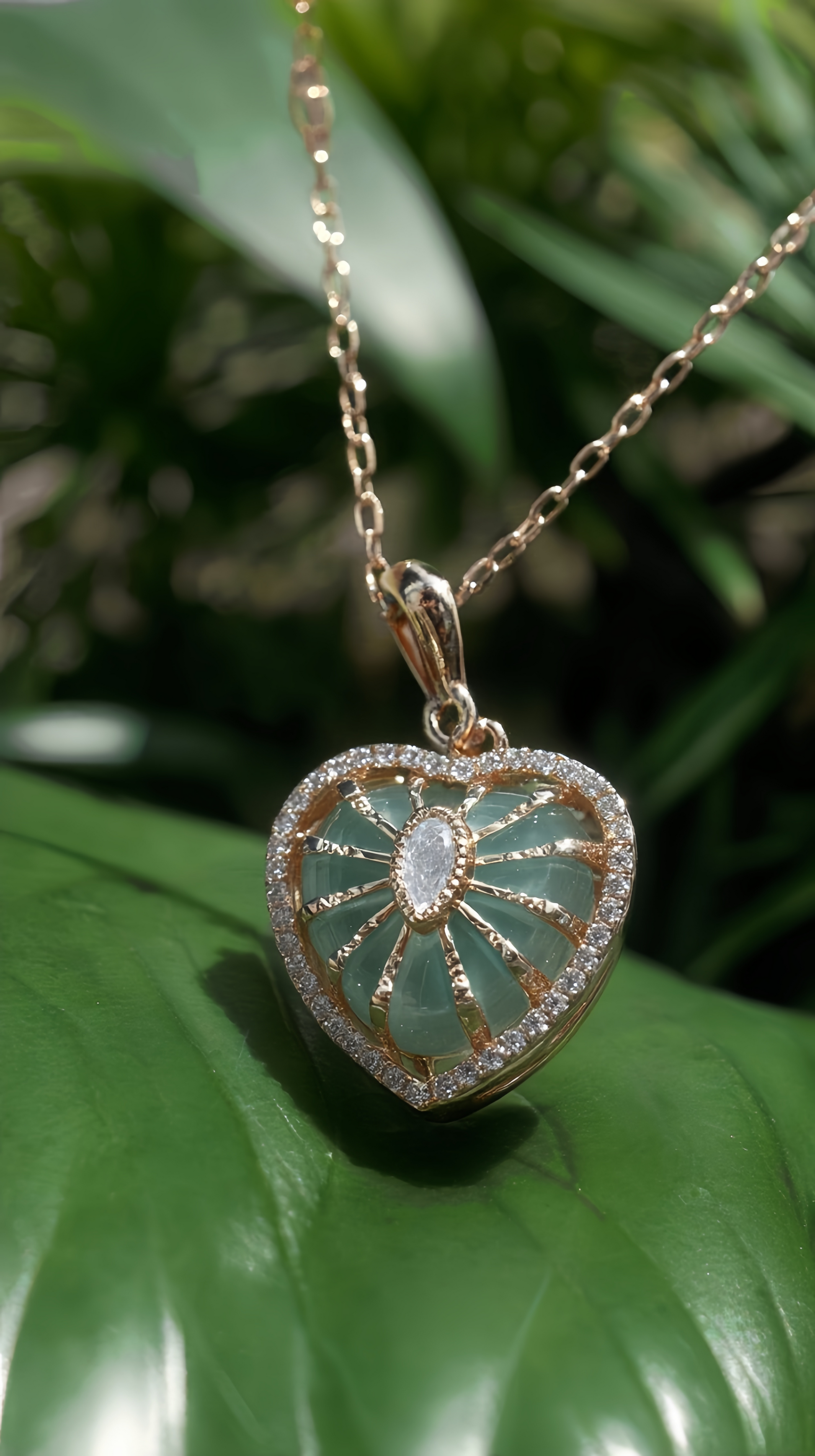 A brilliant emerald heart, adorned with star-studded pavé crystals, evokes emotional depth and protection.